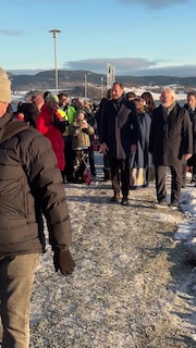 01:38 Ønskes velkommen25. november 2025Kronprinsen tar seg tid til en prat med de som ønsker ham velkommen.